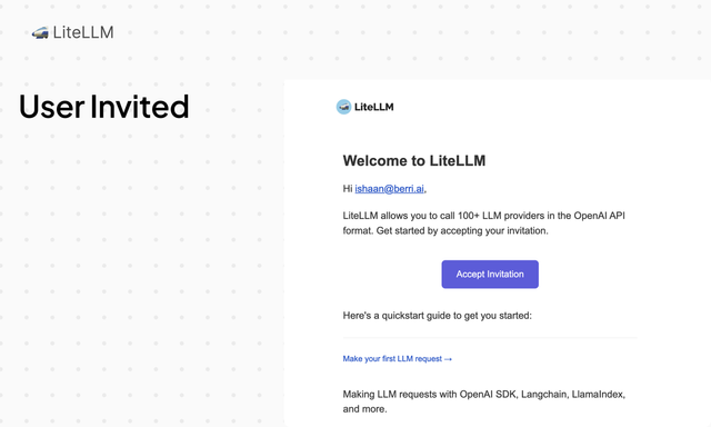 On the LiteLLM Proxy UI, go to Users > Create User > Enter the user's email address > Create User.